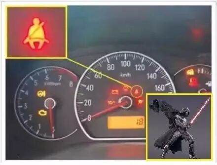 玩笑归玩笑,正确答案告诉你,它是安全带指示灯,好么!该指示灯用来显示安全带是否处于锁止状态,当该灯点亮时,说明安全带没有及时的扣紧。安全带是生命带!莫让“刺客”在关键时刻给你一刀!